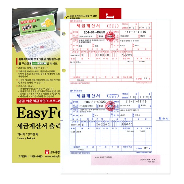 품명이지폼 세금계산서 출력용지 타공 A4 200매