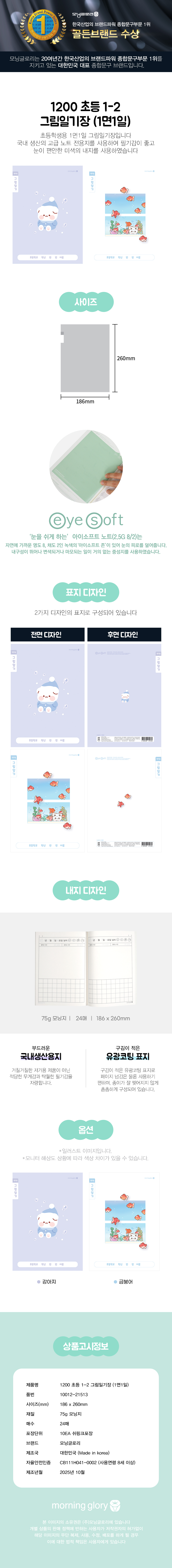 품명초등 1-2 1면1일 그림일기장(디자인랜덤/모닝글로리)