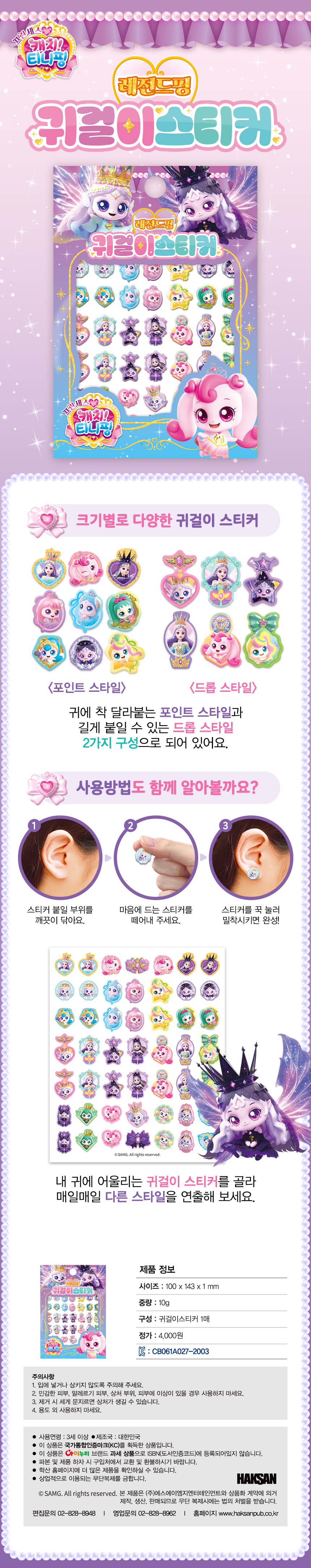 품명프린세스 캐치! 티니핑 귀걸이 스티커-레전드핑