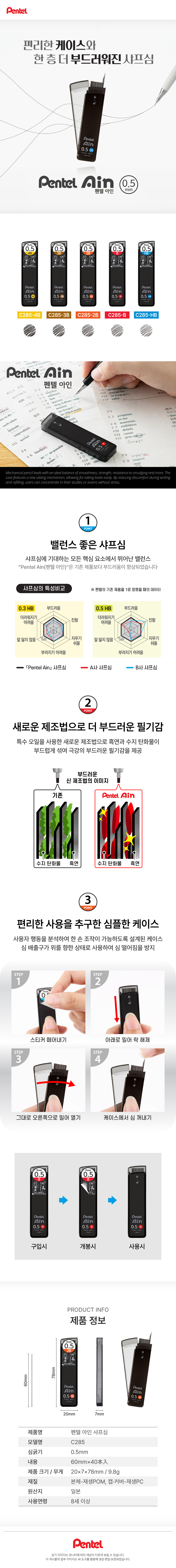 품명펜텔 아인샤프심(0.5mm/HB/C285-HB)