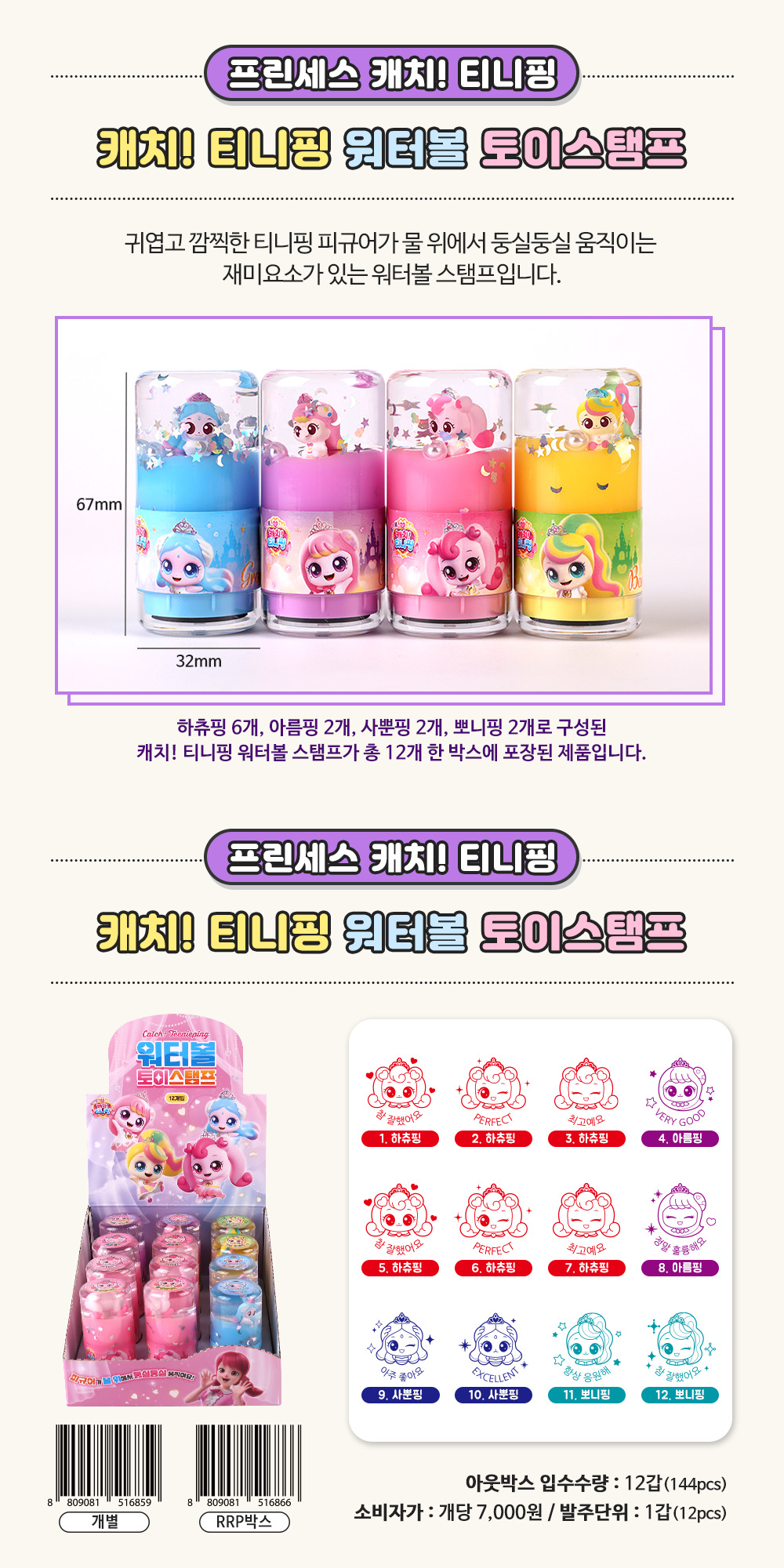 품명프린세스 캐치 티니핑 워터볼 토이스탬프